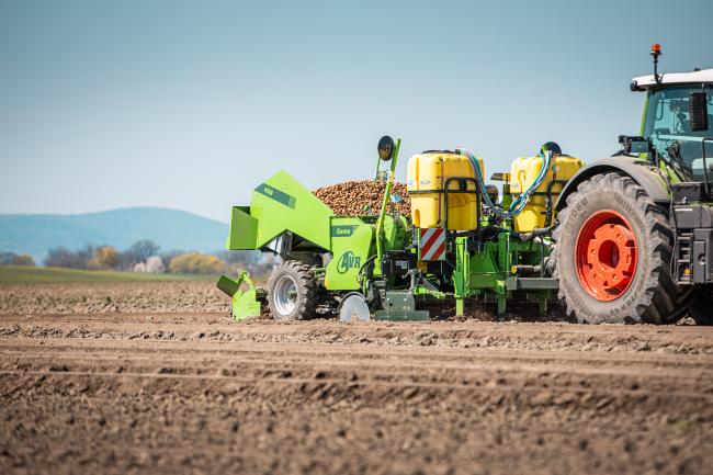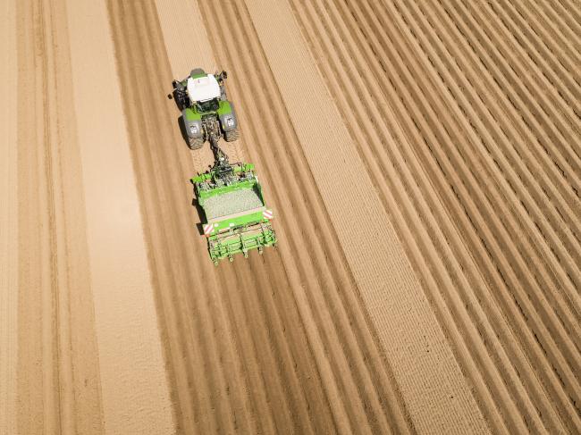 Для облегчения обработки урожая трассы для опрыскивания с GPS-управлением автоматически опускаются в соответствующие ряды. Кроме того, сеялка автоматически прекращает подачу семенного картофеля в эти ряды.